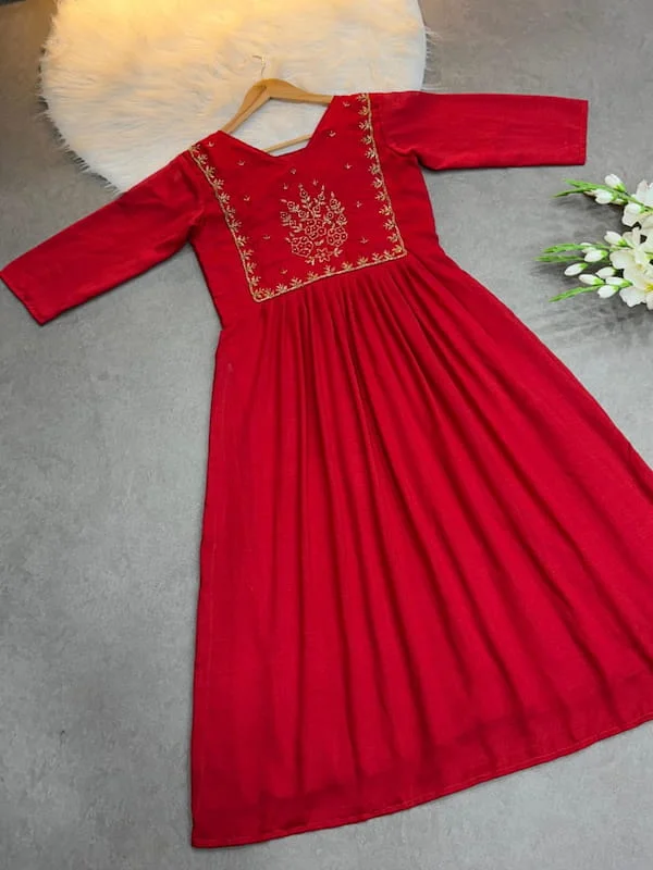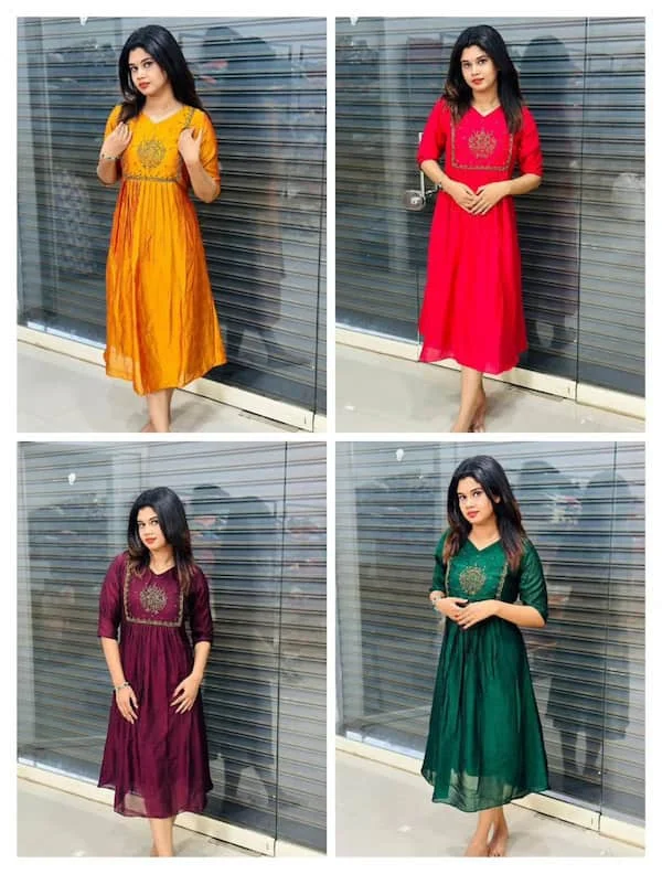 0 Review for Designer Vichitra Silk Handwork Kurti with Beads & Kardana