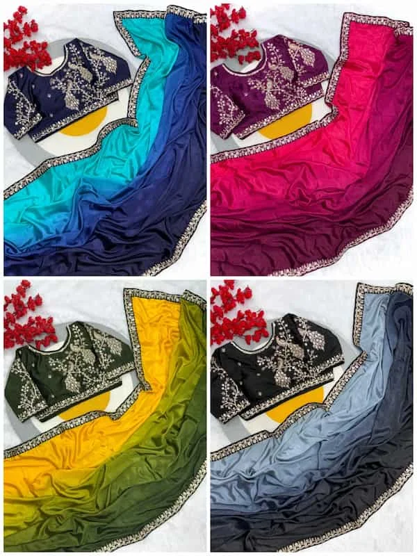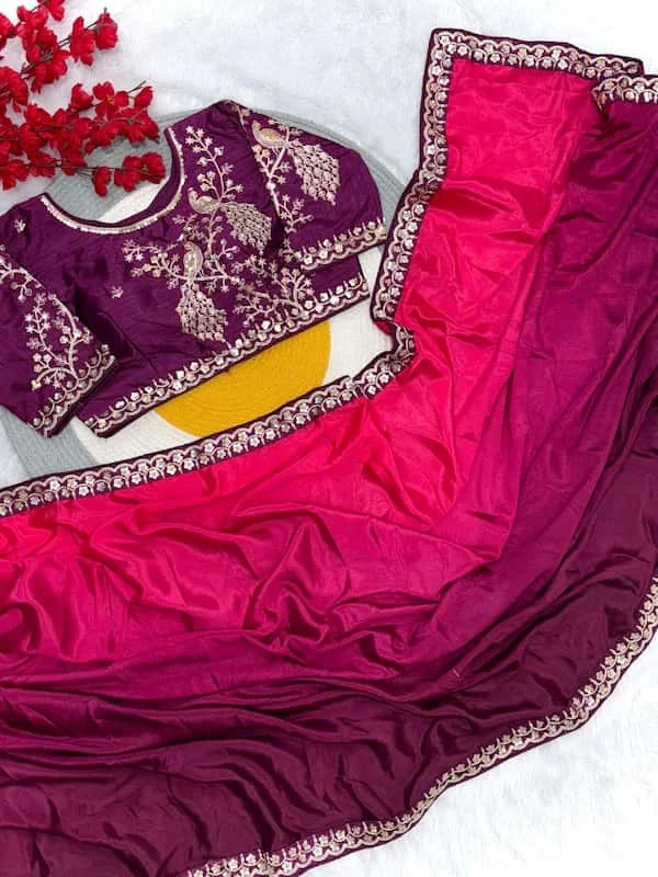 • Saree: Pure blooming natural Chinnon padding silk with elegant sequence design • Border: Rich elegant lace on both sides • Blouse: Designer readymade stitched blouse (Free size 38” with margin up to 42”) – can be altered as per requirement • Style: Ready-to-wear, luxurious & timeless • Occasion: Perfect for parties, weddings & festive functions • Status: Ready stock