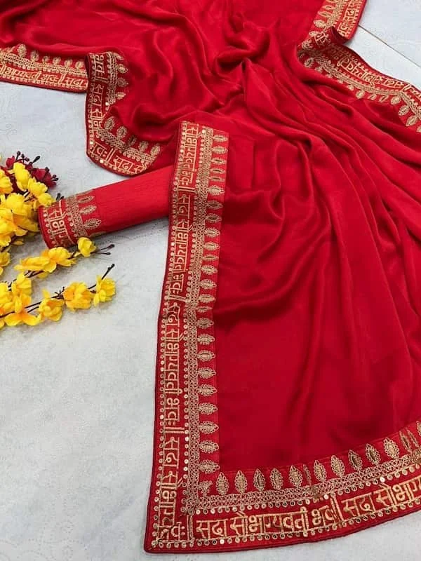 Saree Fabric: Heavy Soft Georgette Work: Embroidery with Thread, Zari & Sequin Lace Work Blouse Fabric: Heavy Mono Silk (Unstitched) Occasion: Party, Festive, Wedding Wear Price: ₹799 Best Quality Guaranteed